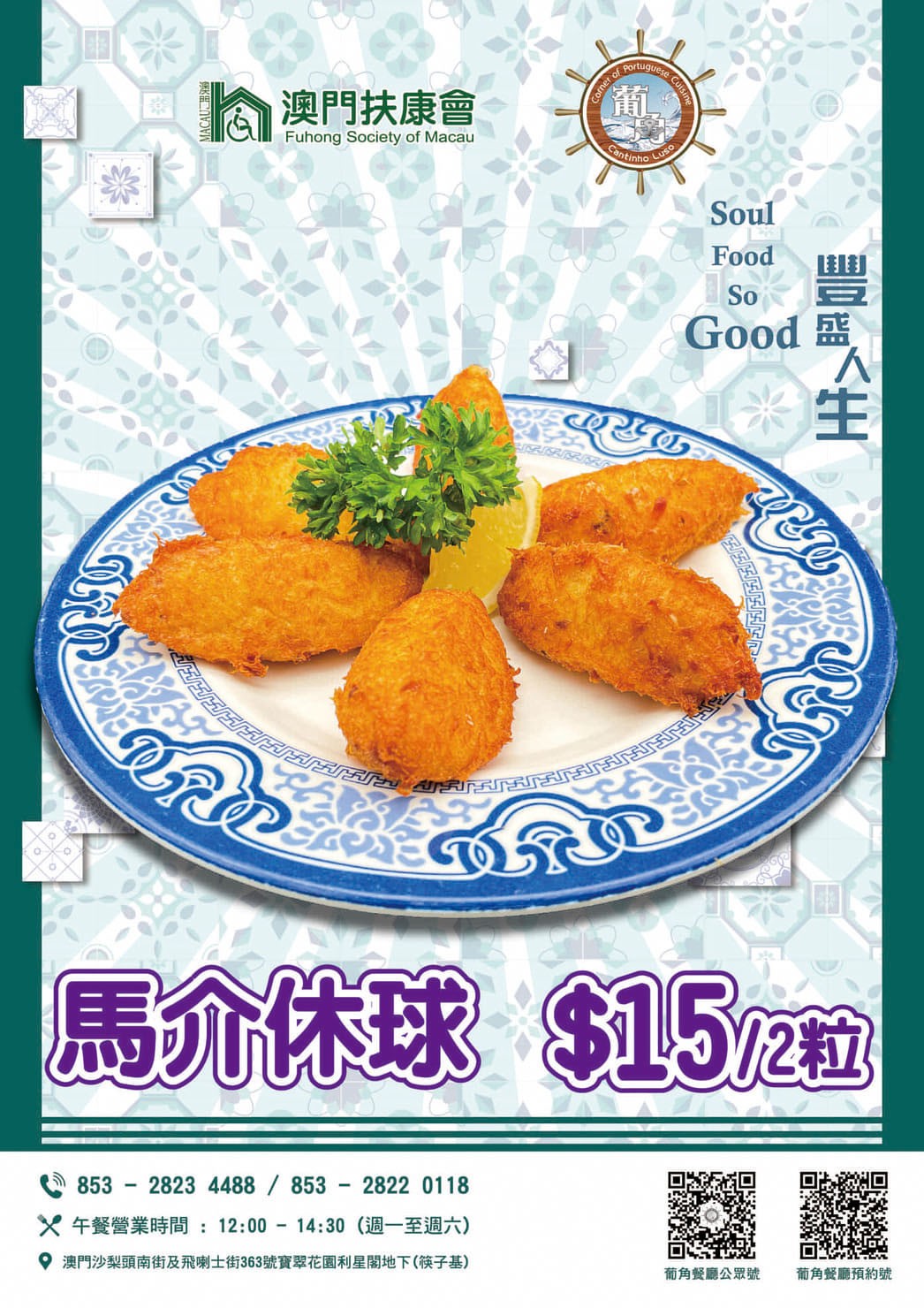 本會葡角訓練餐廳有幸得到澳門國際旅遊(產業)博覽會的大會邀請,於4月25至27日參展,共襄盛舉;葡角會在B22-19攤位等待大家的光臨,是次推介馬介休球、熱狗包及無花菓蜜凍,大家經過展覽會都可以支持下我地~