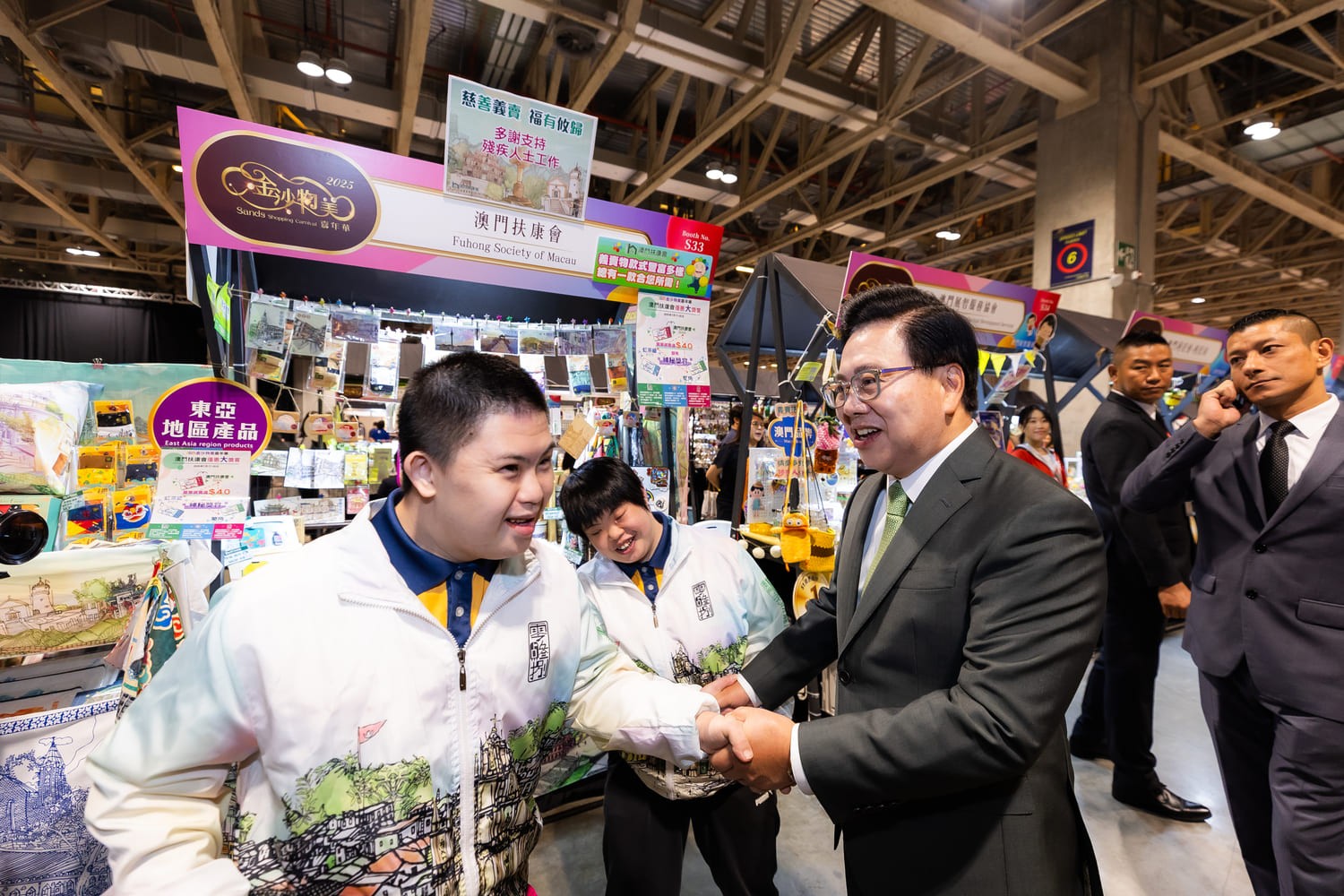 昨日,「2025金沙物美嘉年華」正式開幕,本會理事會主席陳才發先生出席開幕典禮,隨後亦現身本會攤位與多位嘉賓一同感受現場熱鬧氣氛,更與嘉賓一同品嚐本會轄下餐飲職訓項目的特色美食與茶飲,並向嘉賓介紹由殘疾人士親手設計與包裝的文創產品,讓大家更深入認識他們的努力與成果,場面熱鬧溫馨。