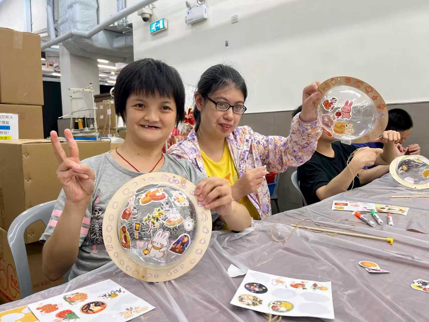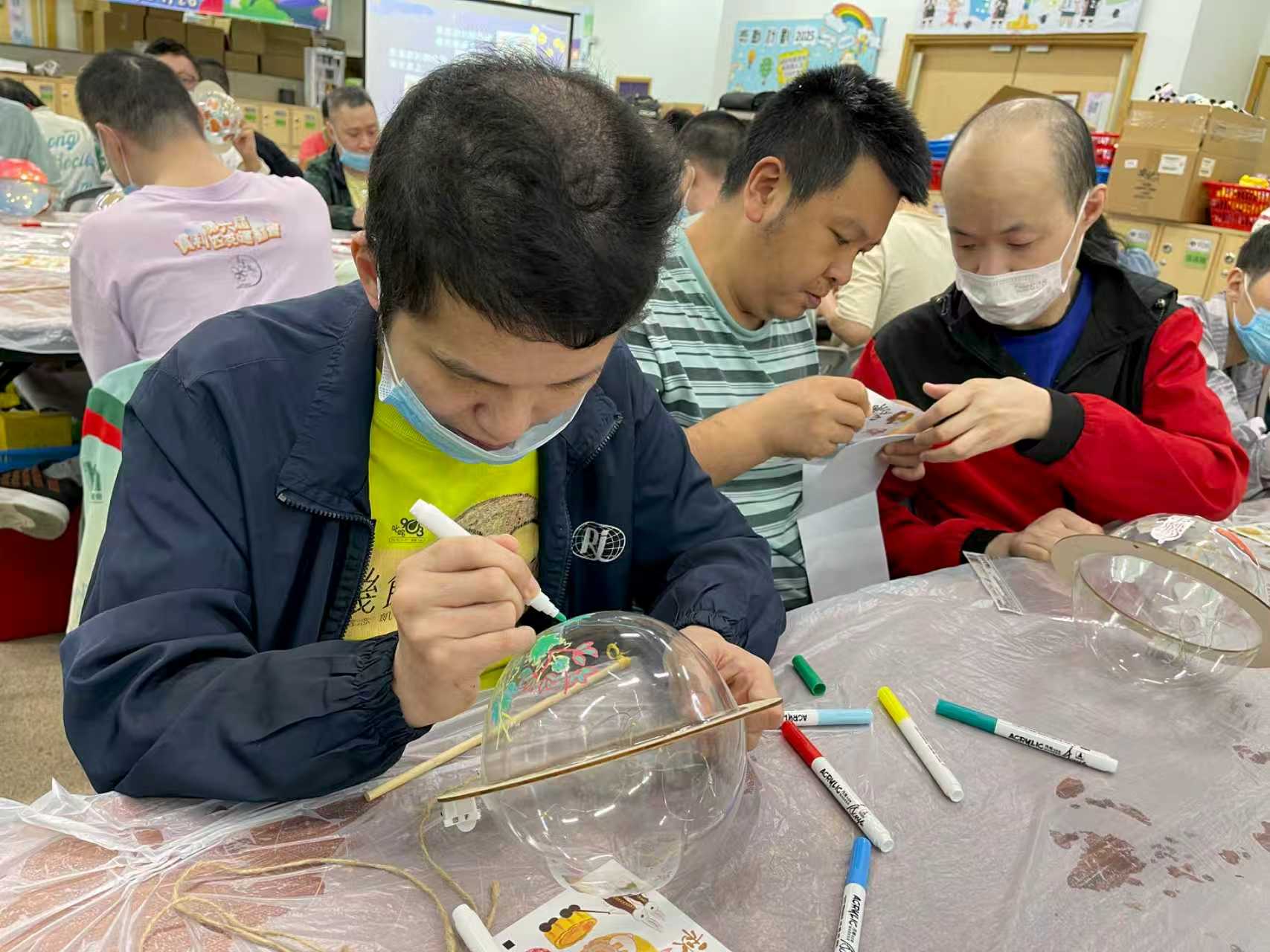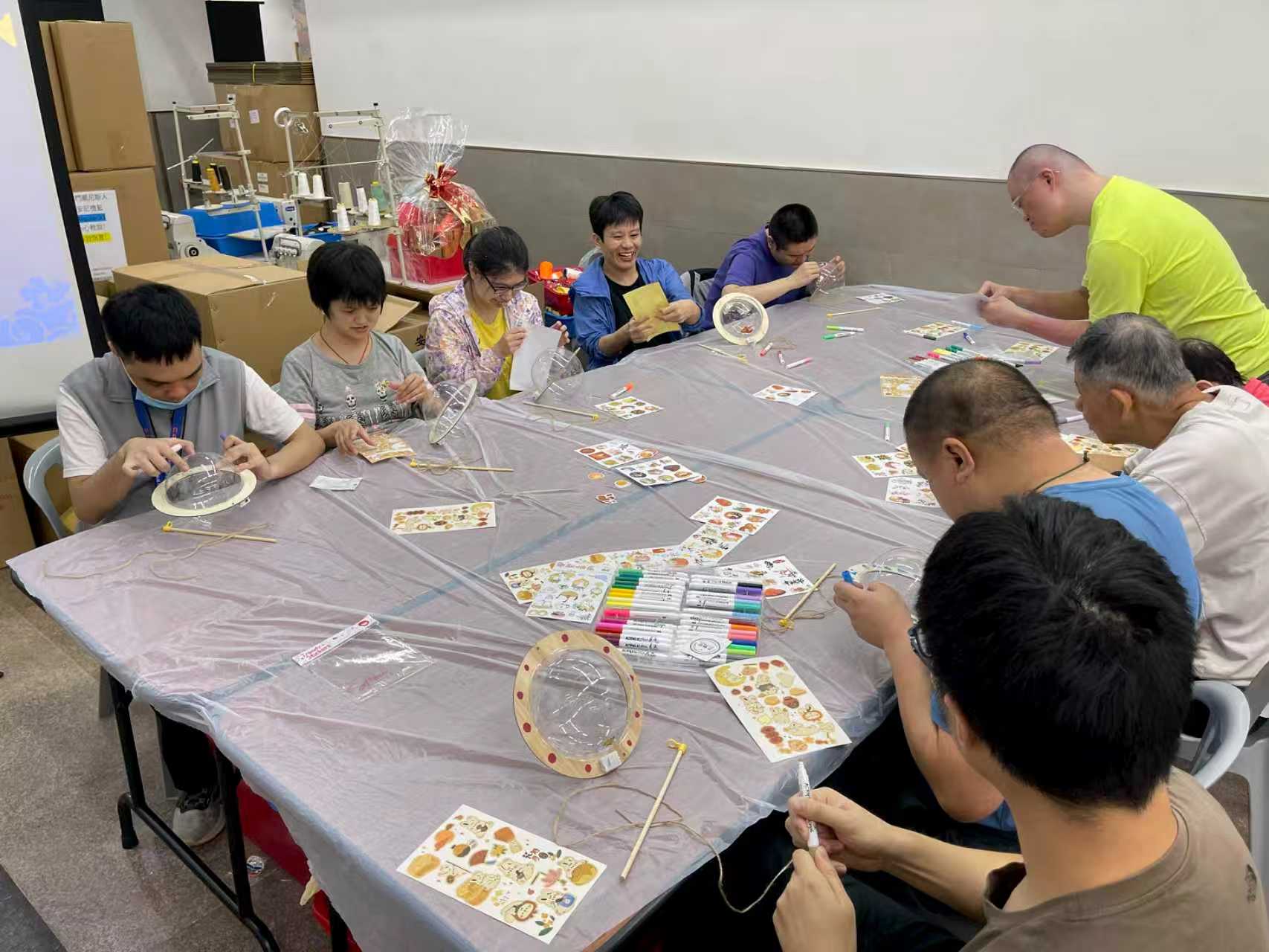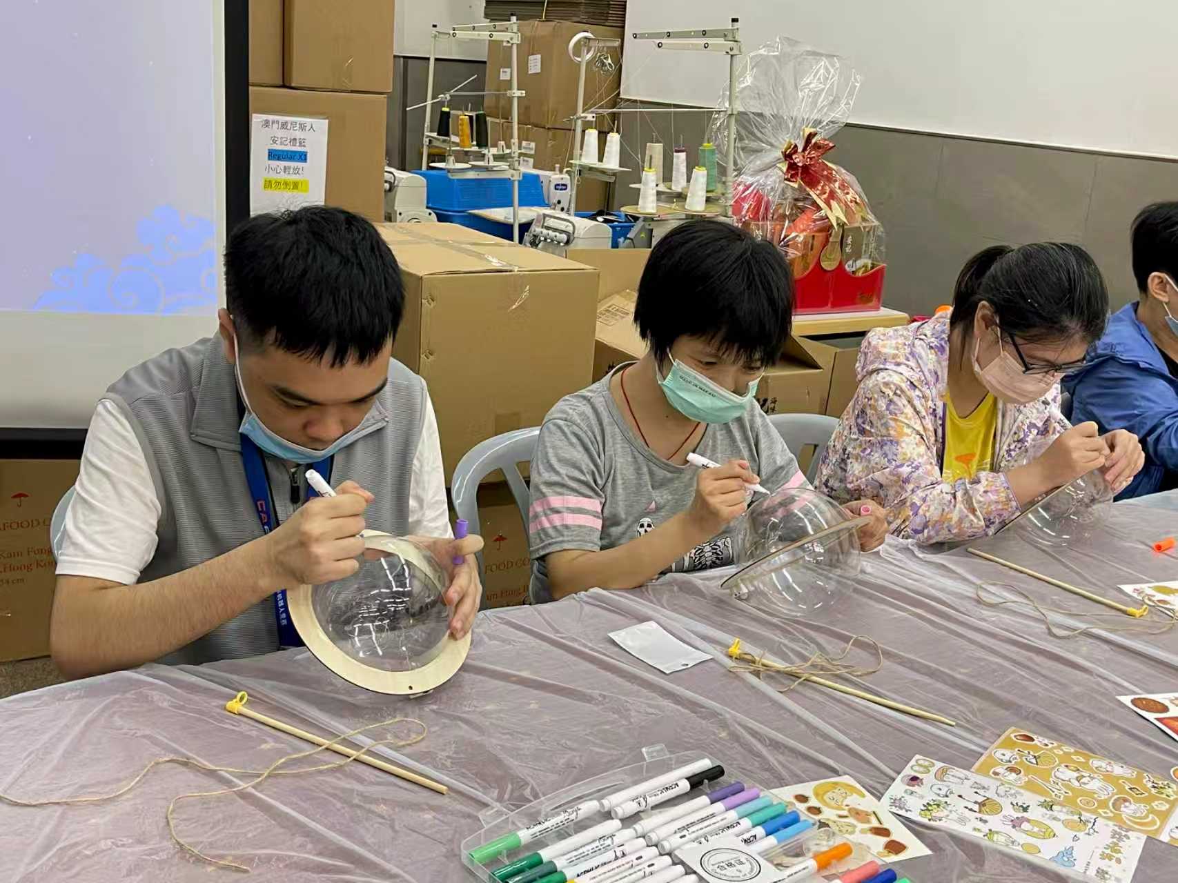 並後大家一起動手製作獨一無二的燈籠,在同工的引導和鼓勵下,學員們又貼又畫,完成一個個精美作品,同時更可鍛鍊他們手眼協調、專注力與成就感的過程。他們高舉自己製作的燈籠時,臉上洋溢的笑容。
