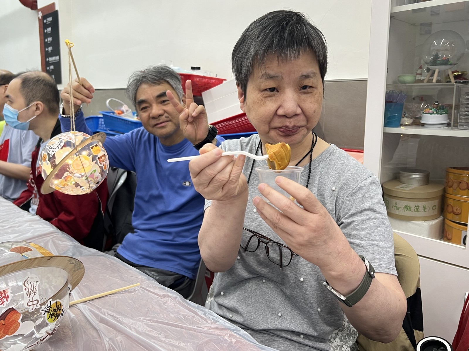 活動尾聲,為他們準備了應節的水果與月餅,彼此分享節日的喜悅。節日慶祝不單是歡樂的體驗,更是學員們與社會連結、建立歸屬感的重要橋樑。每一次的文化探索,都在豐富他們的生命經驗,並在支持與陪伴中,一起編織更多幸福回憶。