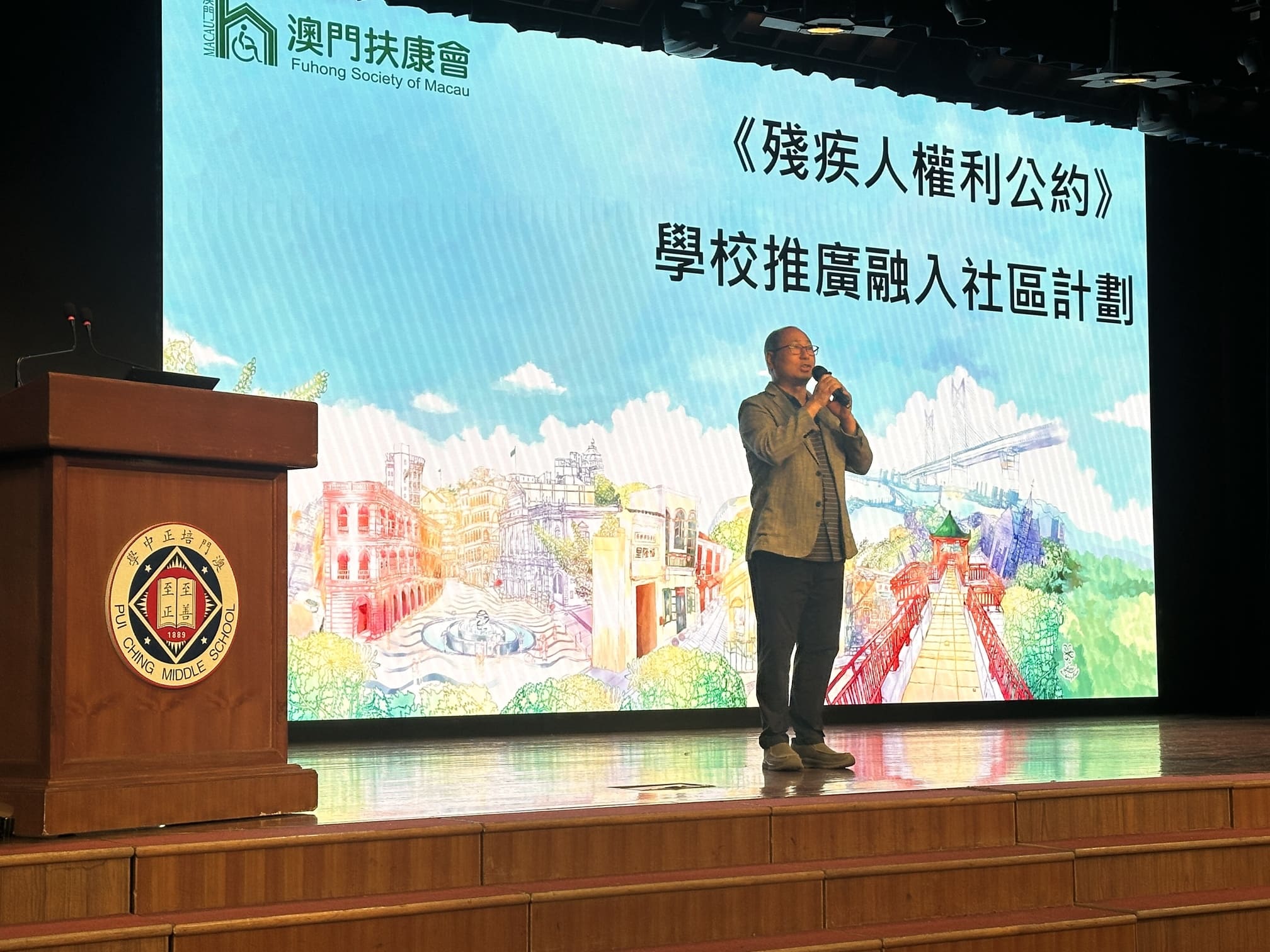 本會於10月20至22日到培正中學進行《殘疾人權利公約》學校推廣融入社區計劃,讓學生從小認識殘疾人士、學習尊重與接納,共同推動社會共融。活動期間,本會理事會主席黃濠先生及副主席陳才發先生與培正中學校長高錦輝先生進行了簡單的紀念品致贈儀式,以表感謝學校的支持。隨後由本會行政經理卓敏儀女士講解《殘疾人士權利公約》的重點內容,並由本會轄下怡樂軒心理治療師梁家俊先生分享有關心理抗壓的小貼士,鼓勵學生學習自我關顧與情緒調節。在第三天的活動中,兩位來自寶翠中心的朋輩支援工作員-文正及逸凡,以自身經歷分享了復元的心路歷程,展現堅持與成長的力量。同場由寶翠中心職業治療師金俊傑先生簡介「朋輩支援工作員計劃」,讓學生更深入了解精神康復者的成長與多元發展。