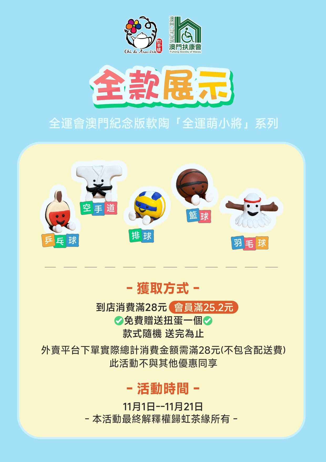 虹茶緣推出全運會澳門紀念版軟陶「全運萌小將」系列扭蛋