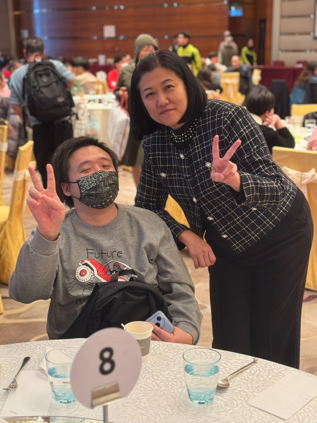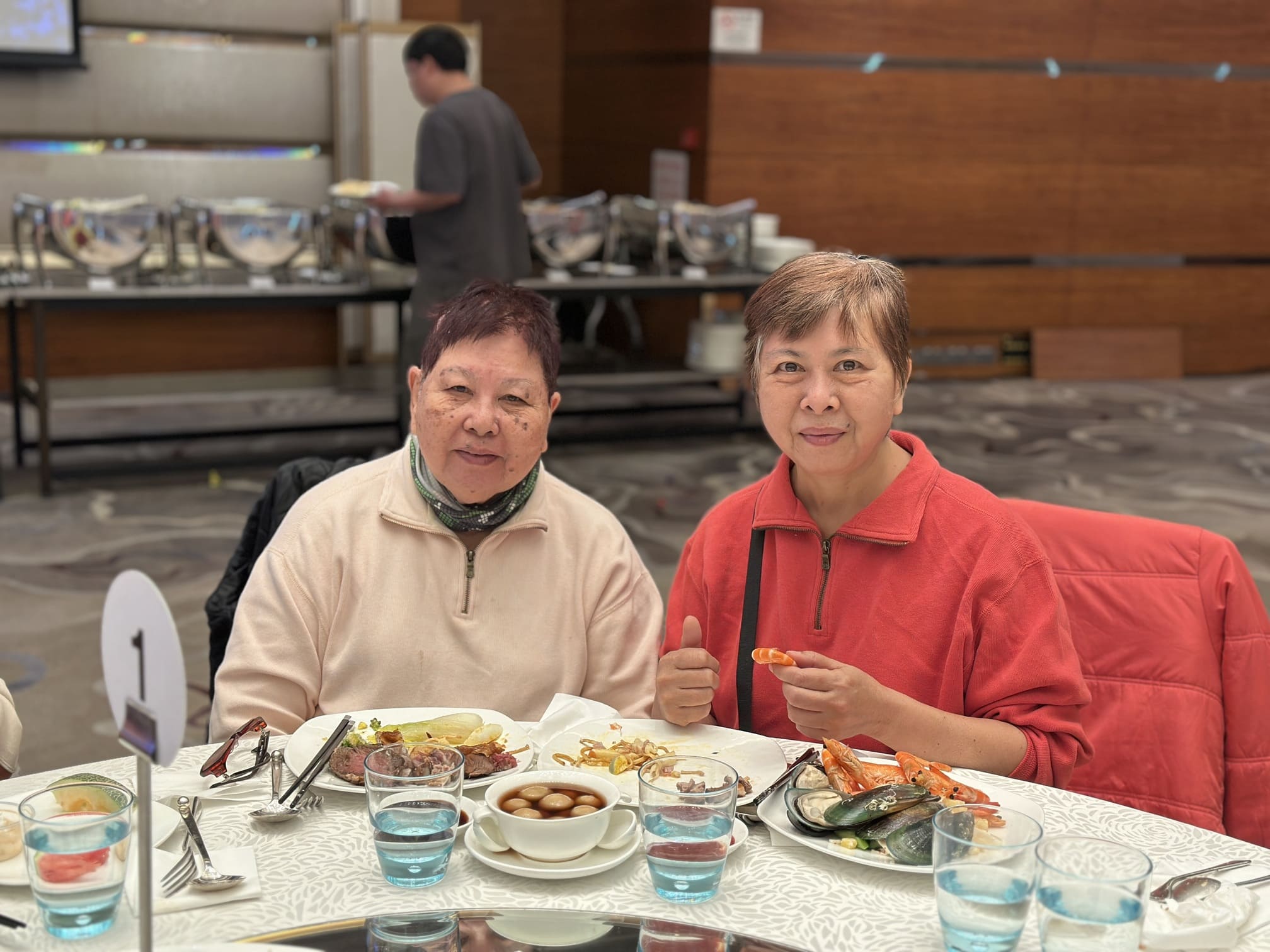本會理事會主席黃濠先生與朋輩支援員阿科合唱經典金曲《兩忘煙水裡》及《天蠶變》,歌聲真摯動人,展現精神復元人士的自信與活力。現場同時設有自助餐及抽獎環節,參加者皆滿載而歸。嘉賓向服務使用者及家屬送上抽獎禮物,表達關懷與祝福,讓大家在節慶氛圍中倍感溫暖。