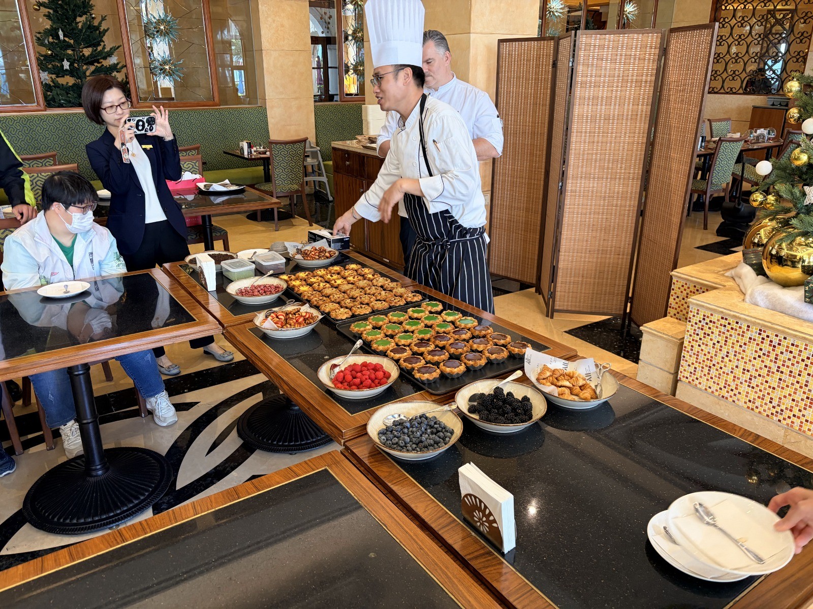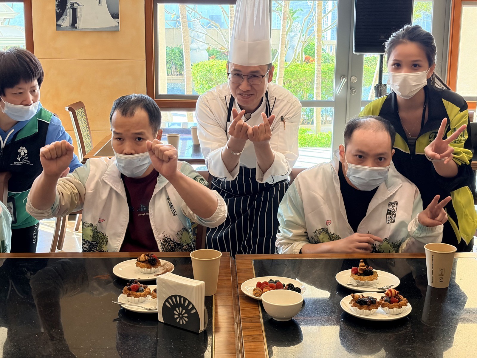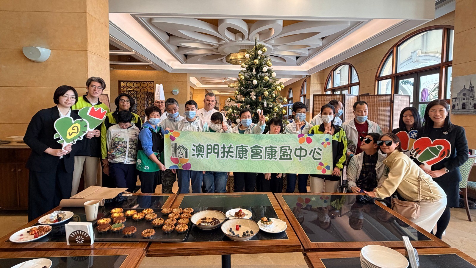 本會康盈中心於2025年11月25日下午,受澳門十六浦索菲特酒店邀請,中心服務使用者、家屬及員工共16人參加蛋撻工作坊。活動由澳門十六浦索菲特酒店兩位廚師教導參加者裝飾蛋撻,透過水果、迷你麵包、果醬,讓服務使用者與家屬體驗裝飾蛋撻的樂趣,發揮想像力,製作獨於自己獨一無二精美的水果蛋撻,製作完成後在場享用親手完成的蛋撻,同時澳門十六浦索菲特酒店亦為服務使用者送上節日祝福。