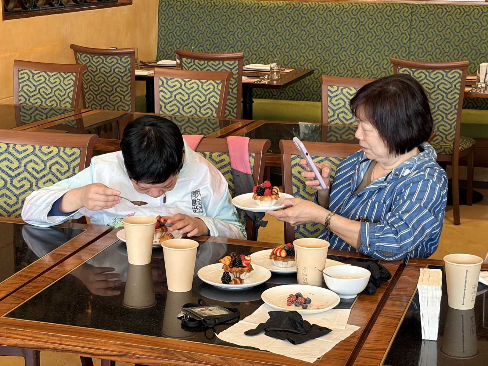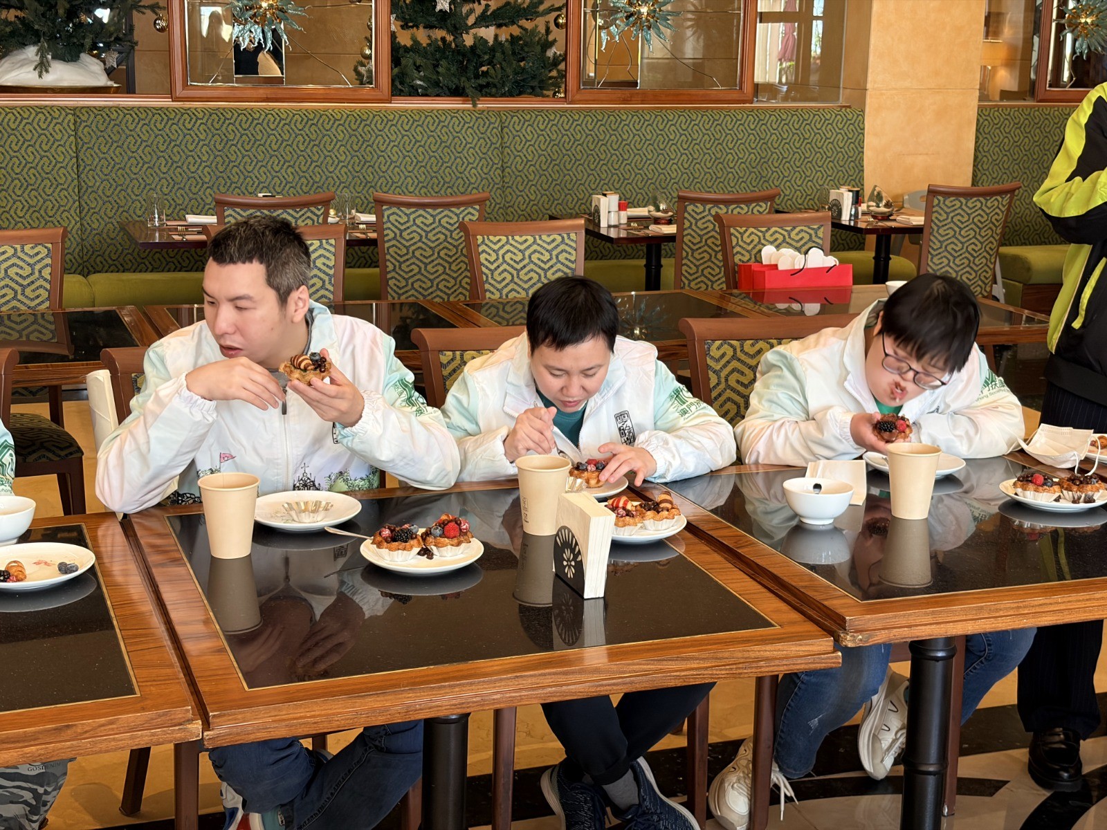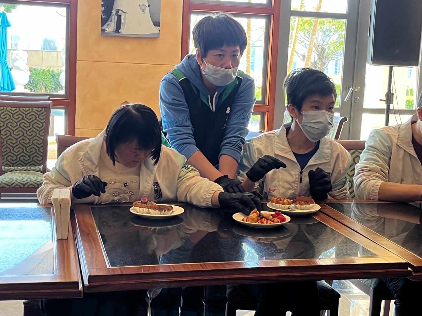 本會康盈中心於2025年11月25日下午,受澳門十六浦索菲特酒店邀請,中心服務使用者、家屬及員工共16人參加蛋撻工作坊。活動由澳門十六浦索菲特酒店兩位廚師教導參加者裝飾蛋撻,透過水果、迷你麵包、果醬,讓服務使用者與家屬體驗裝飾蛋撻的樂趣,發揮想像力,製作獨於自己獨一無二精美的水果蛋撻,製作完成後在場享用親手完成的蛋撻,同時澳門十六浦索菲特酒店亦為服務使用者送上節日祝福。