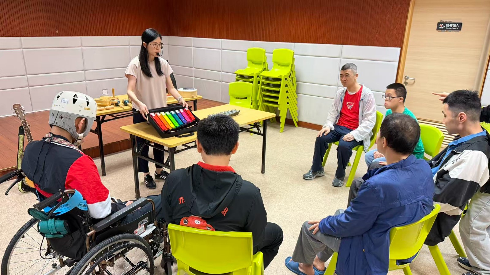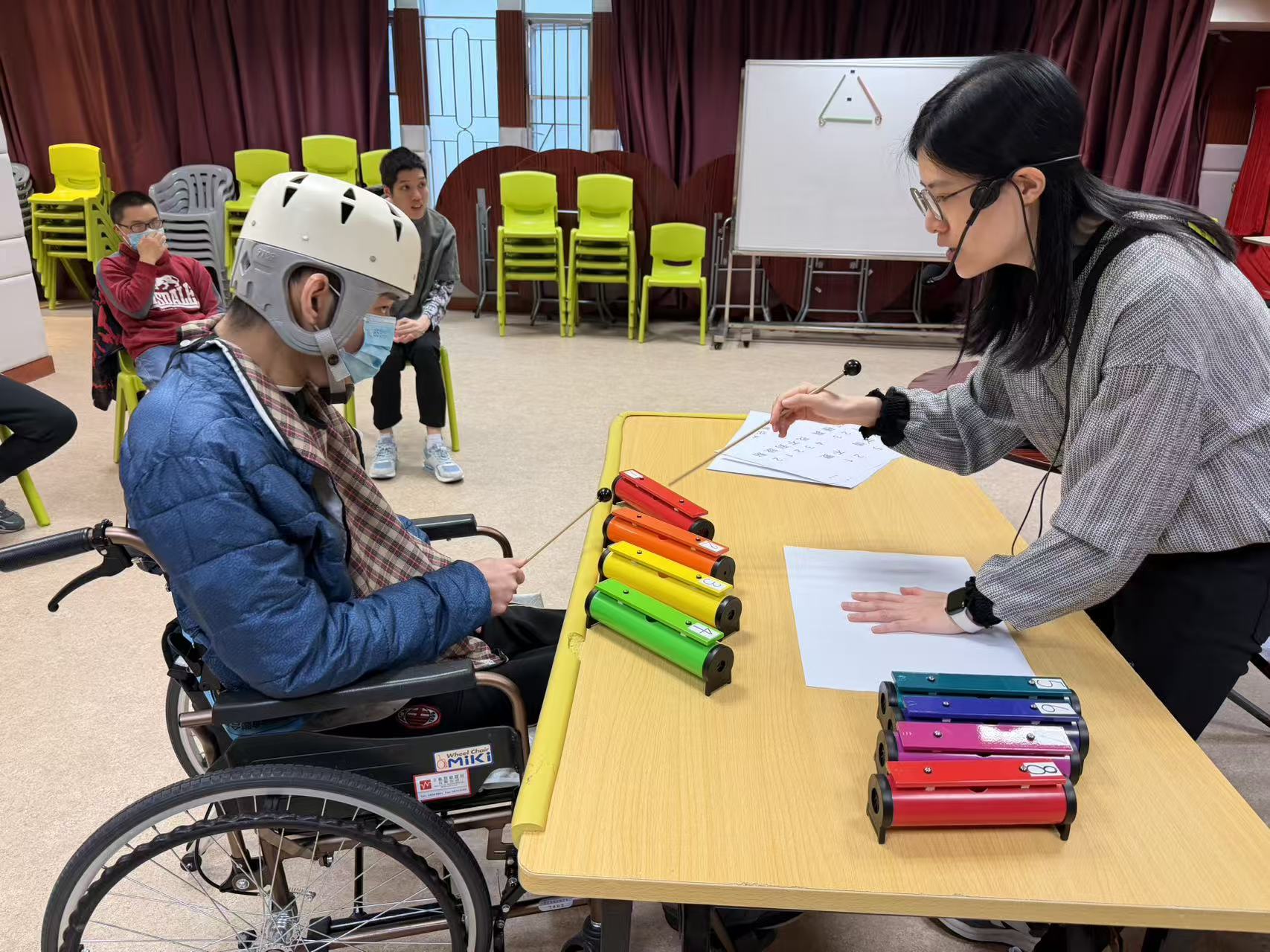 過程中,治療師運用節奏訓練、感官刺激及正向強化等技巧,營造安全而具支持性的治療環境,使參與者得以在藝術體驗中探索自我、建立連結,體現藝術治療促進內在成長與外在適應的雙重功能。