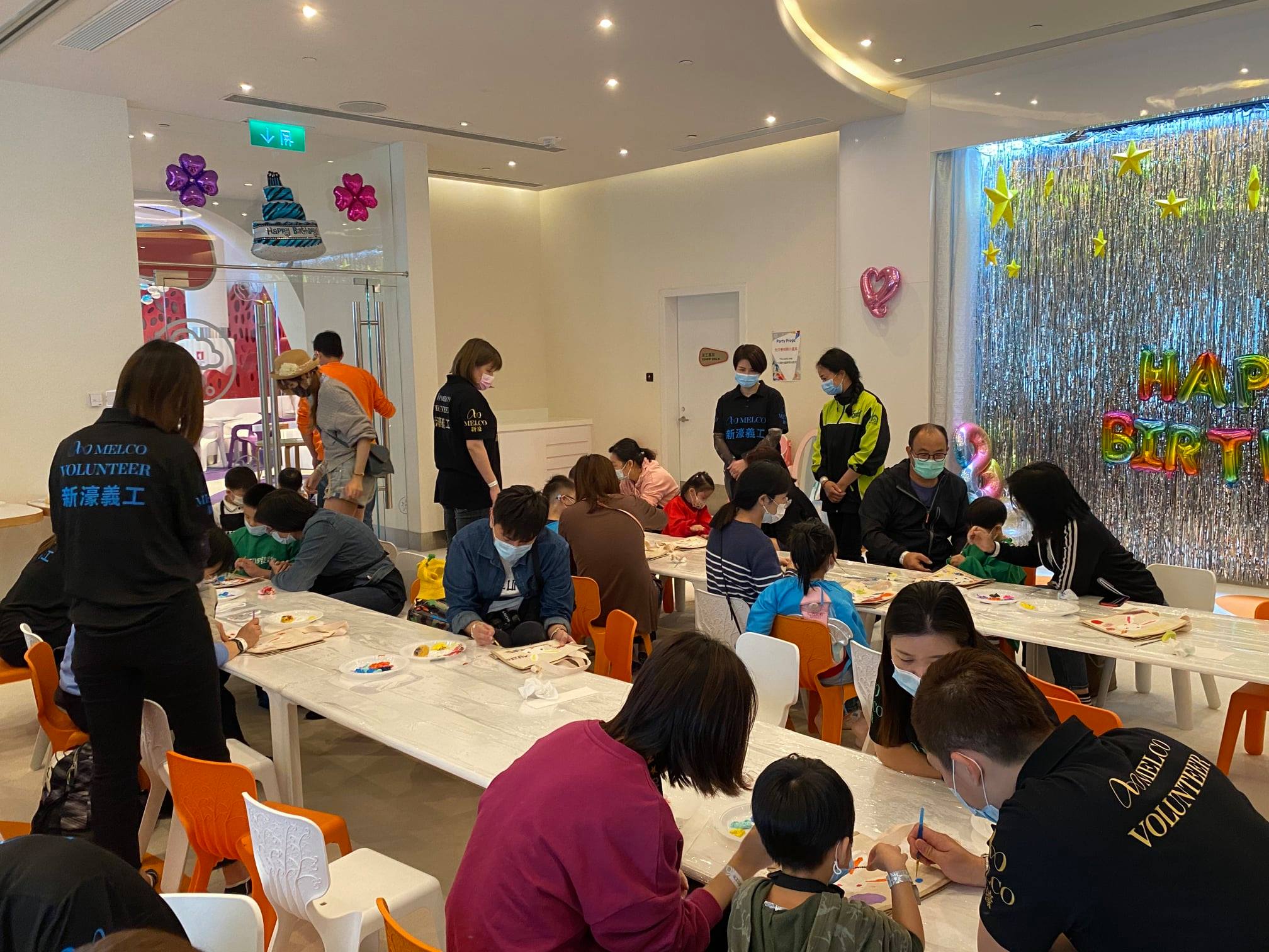 2021年5月:澳門扶康會轄下「欣悅展能藝術工作室」的服務使用者受新濠博亞邀請一同參與了一場親子活動。適逢臨近復活節,一行14對親子聯同新濠博亞義工隊合力製作復活節圖案環保袋。