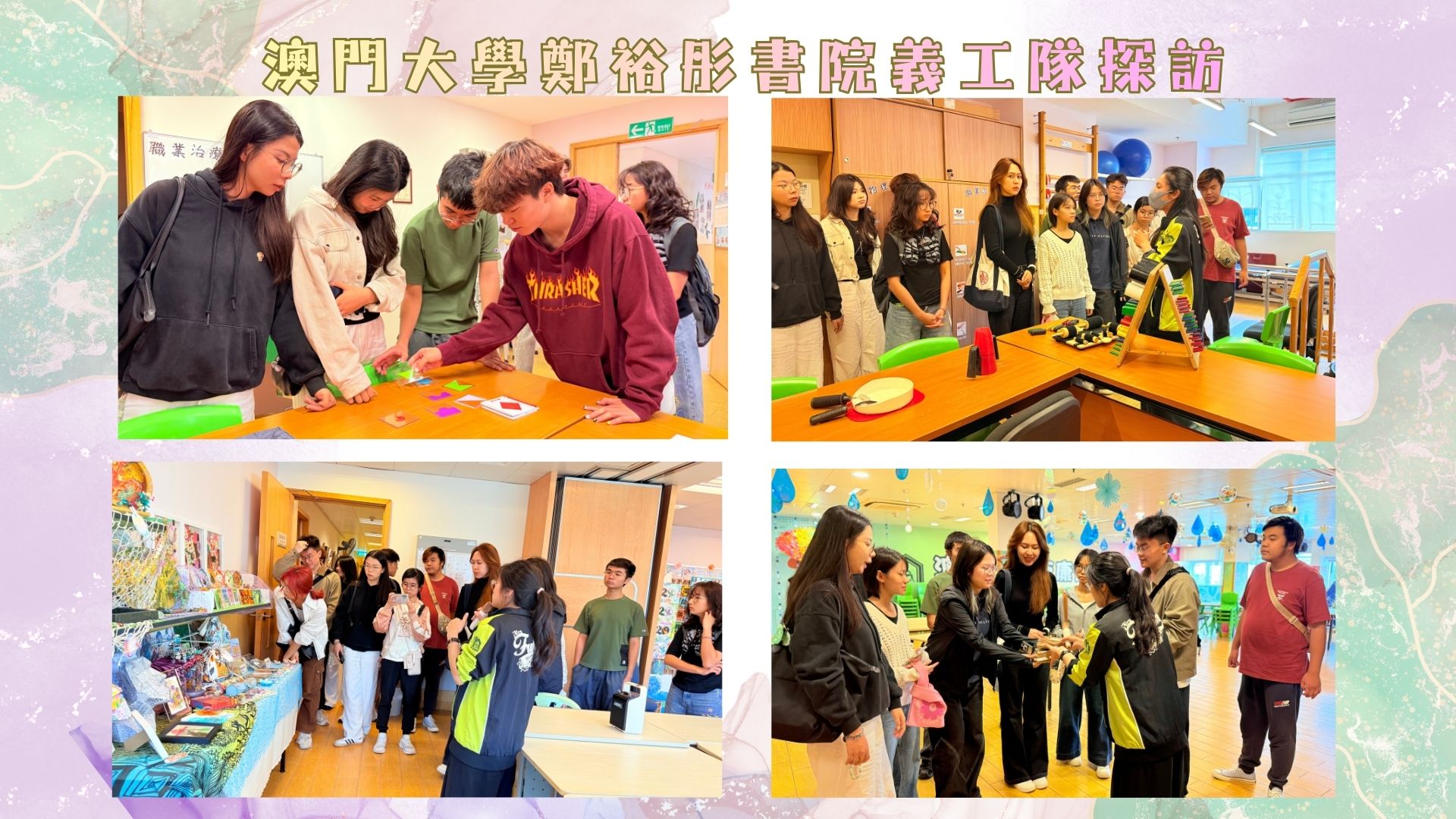 澳門大學鄭裕彤書院義工隊於2025年11月12日探訪澳門康盈中心,是次探訪旨在促進大學生了解機構日常,並透過「地壺球」體驗與服務使用者互動交流。