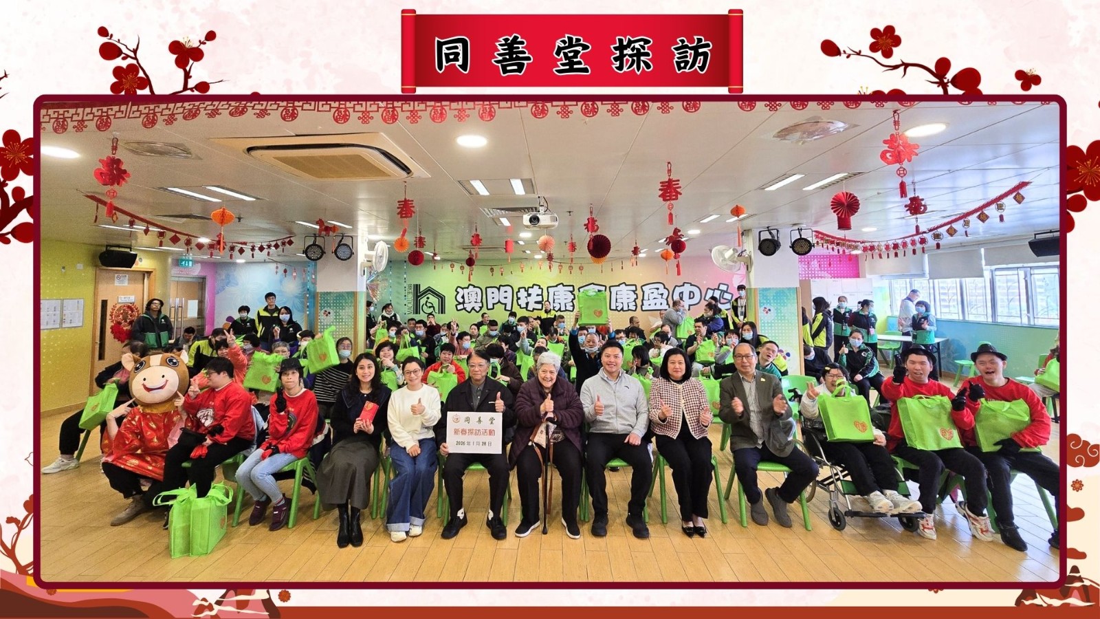 澳門扶康會再次感謝澳門同善堂長年以來的慷慨支持與親切關懷,讓服務使用者能與社會各界攜手迎春,共享佳節喜悅。是次活動在溫馨歡樂的大合照中圓滿結束。