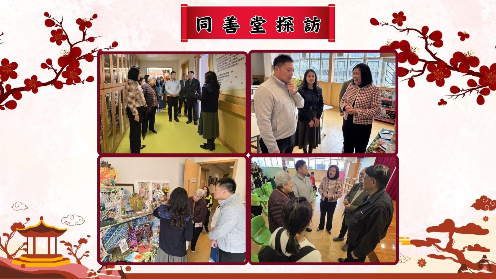表演結束後,嘉賓們向現場眾人派發了豐富的新春福袋及利是,讓大家提前感受到濃厚的節日喜氣,在寒冬中傳遞暖意。派發活動結束後,由本會總幹事周惠儀女士及中心經理陳思燕小姐帶領嘉賓參觀中心,介紹各項設施及日常服務,深入了解中心及殘疾人士提供專業照顧與訓練,促進社會共融。