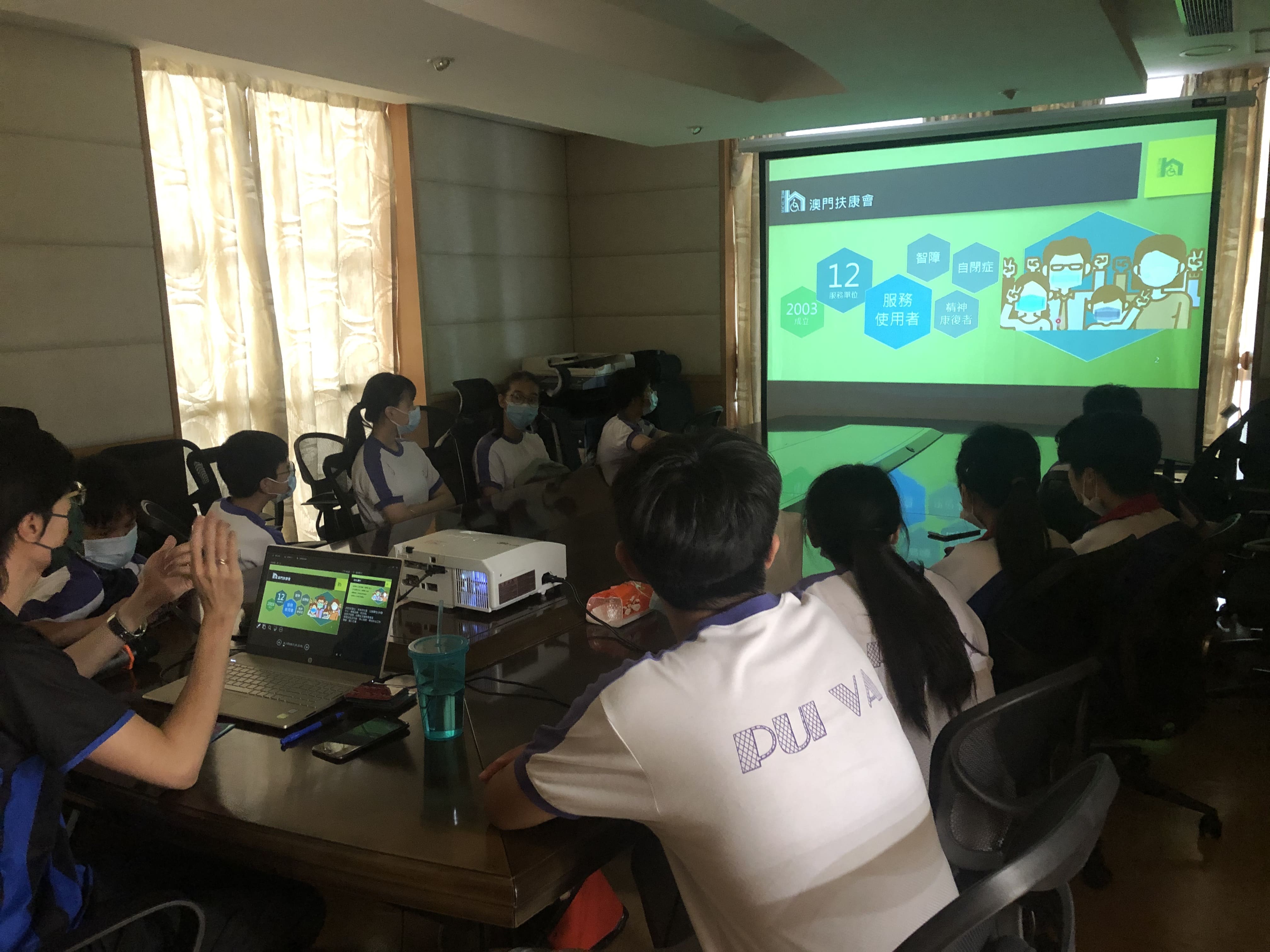 日前,澳門培華中學在校方組織下,師生共25人到本會怡樂軒中心進行交流及參觀,認識並了解精神復康服務。在分享會上,本會職員為同學們講解精神健康相關資訊,並列出了許多日常中對殘疾人士常見的誤解,同學們積極反應熱烈並積極發問,本會職員亦一一為同學們解答。其後同學們在中心職業治療師的帶領下進行桌上訓練,體驗捲紙花活動,學習技巧再嘗試制作,合力完成的捲紙花作品更可帶回學校留為紀念。