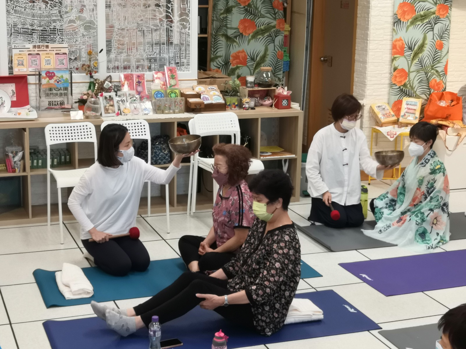 就上述提及的研究結果及政府推行「照顧者津貼先導計劃」中,可感受到殘疾人士的家庭存在有一定困難,照顧者在照顧殘疾人士期間所遇到的困難外,照顧者面對的精神和經濟壓力也相當大。因此,本會之家屬資源服務會定期舉辦紓壓的工作坊讓照顧者參與,幫助他們紓緩長期心理壓力,減低被周圍環境所困擾,紓緩緊張的情緒。除了恆常舉辦興趣班及聯誼活動外,亦透過社會工作局資助下舉辦「靜觀生活工作坊」及「頌缽健康工作坊」,「靜觀生活工作坊」讓照顧者了解壓力的來源及反應,學習緊張時如何令自己放鬆,培養覺察力,體驗專注當下的生活方式。「頌缽健康工作坊」是以頌缽聲音引導照顧者放鬆,以敲缽方式讓音頻和振動傳送到身上,產生共振,再配合呼吸法,全身肌肉及心靈得以休息及紓緩。照顧者表示平日處於非常緊張及焦慮狀態,但參與工作坊時,聲音及環境都感到平靜,能跟隨柔和的聲音令自己平靜下來。本會家屬資源服務會繼續舉辦紓緩壓力的課程,讓照顧者學習不同的紓壓方法,達致身心放鬆。