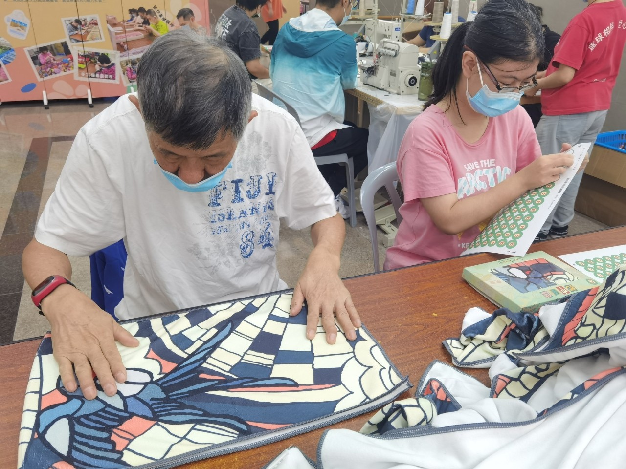 早前,本會推出本年度的慈善賣旗活動「把巾留住」系列義賣物,目前正在火熱預購中,大家支持了嗎?小編為大家直擊工場的情況,服務使用者正在努力包裝義賣物當中。