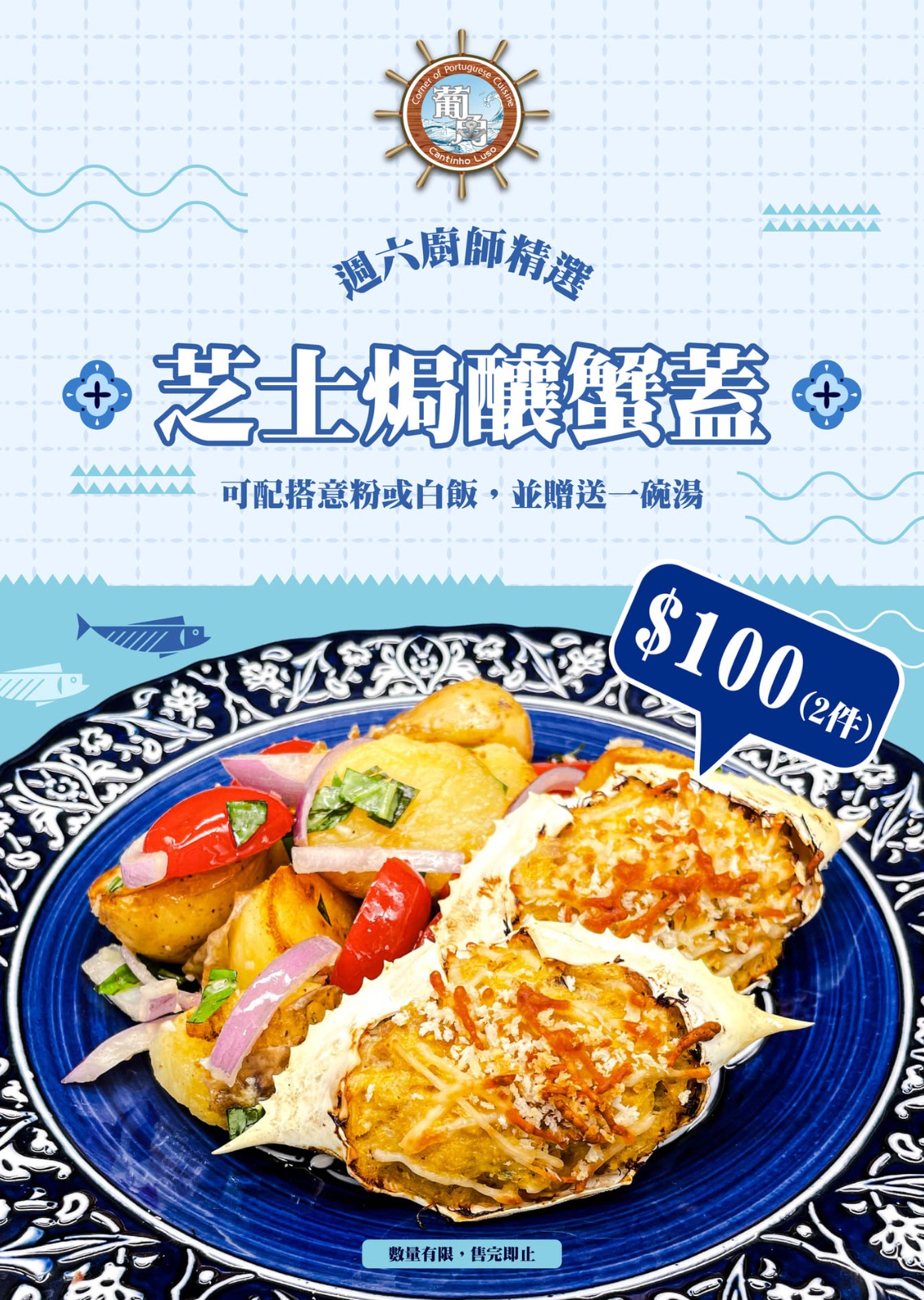 全新菜式驚喜登場,秘製蘿蔔咖喱蝦,咖喱濃香配搭清爽蝦仁,令人胃口大開;秘製香橙骨,橙香酸甜,開胃又美味!週六限定廚師精選更有芝士焗釀蟹蓋,芝士濃香四溢!