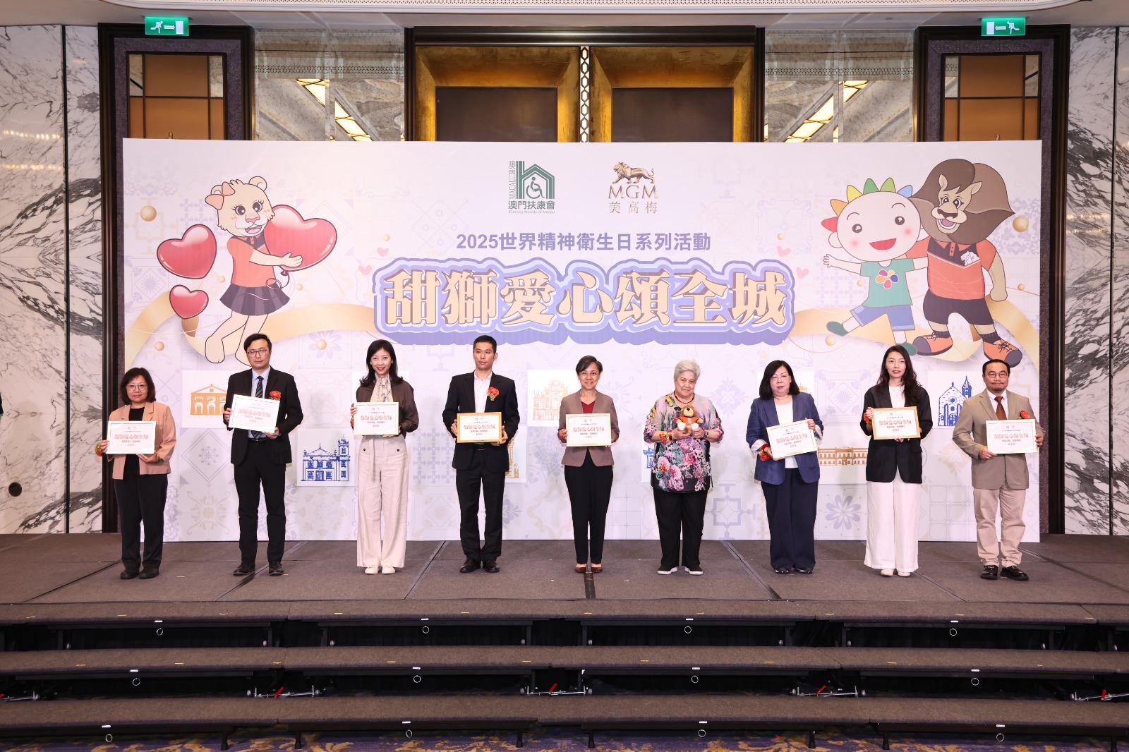 自2018年起,澳門扶康會與美高梅攜手並肩,以每年的10月10日世界精神衛生日為契機,圍繞體育、康復、文化和藝術等主題舉辦多元活動,喚起社會各界對精神健康的關注和重視。2025年,雙方迎來第七年合作,合辦的世界精神衛生日系列活動——《甜獅愛心頌全城》,通過創新形式凝聚來社會各界力量,增進公眾對精神康復的正確認知,消除誤解與偏見。