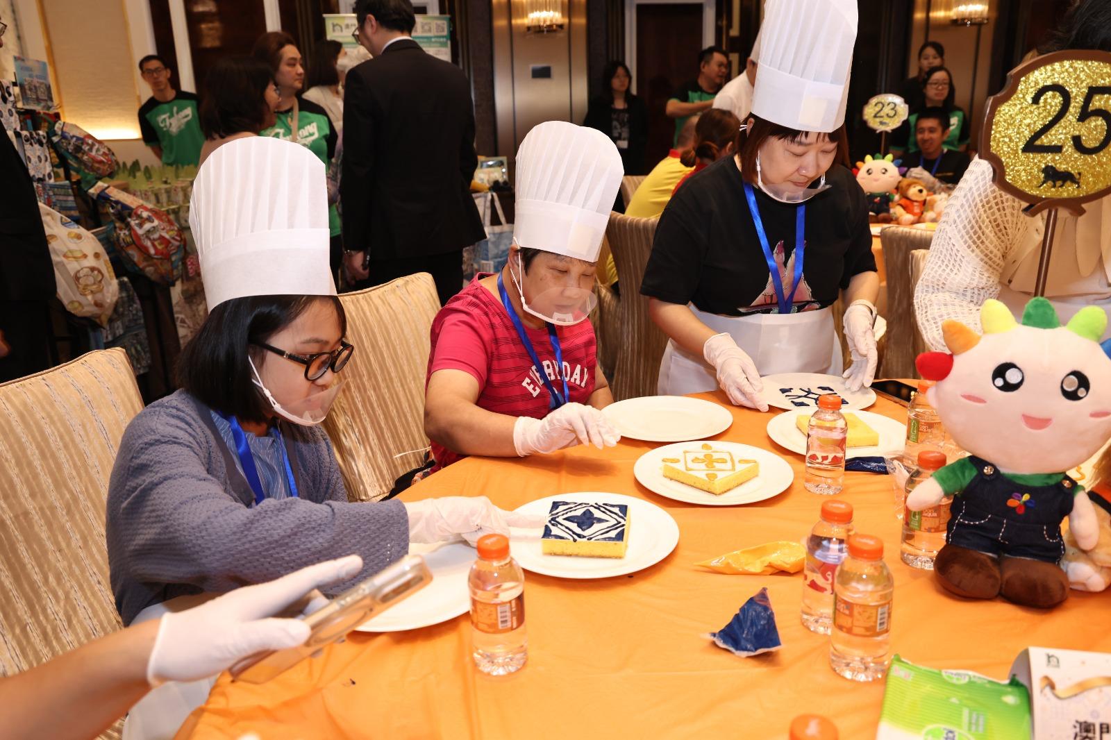 本年活動旨在增進社會對精神復元人士的理解,推廣職業訓練服務並促進社會共融,美高梅與澳門扶康會攜手策劃一系列意義非凡的共融活動。籌備期間,雙方成員共同參與葡式橙餅製作,並邀請了澳門土生菜名廚馬央擔任技術顧問,提供專業意見與指導。通過合作過程彼此交流,展現精神復元人士的專業能力與潛能,進一步推動社會共融。