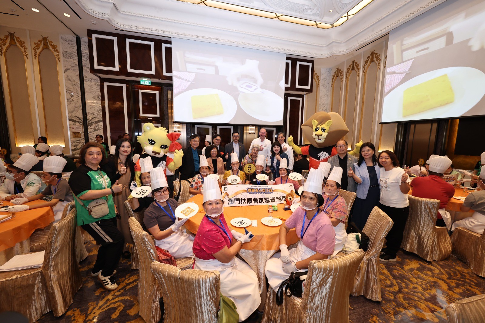日前10月18日,本會與美高梅舉行2025世界精神衛生日系列活動《樂「獅」蓮城展關懷》,《甜獅愛心頌全城》,通過創新嘗試,匯聚來自社會各界的力量和參與,增進公眾對精神康復的正確認知,消除存在的誤解與偏見。此次活動邀請了約本澳24間學校、社團及企業,共計約300人參與,共同製作大型葡式橙餅,透過活動體現各界對精神健康的關注和支持,同時推廣已列入國家級非物質文化遺產代表性項目名錄的土生葡菜美食文化。