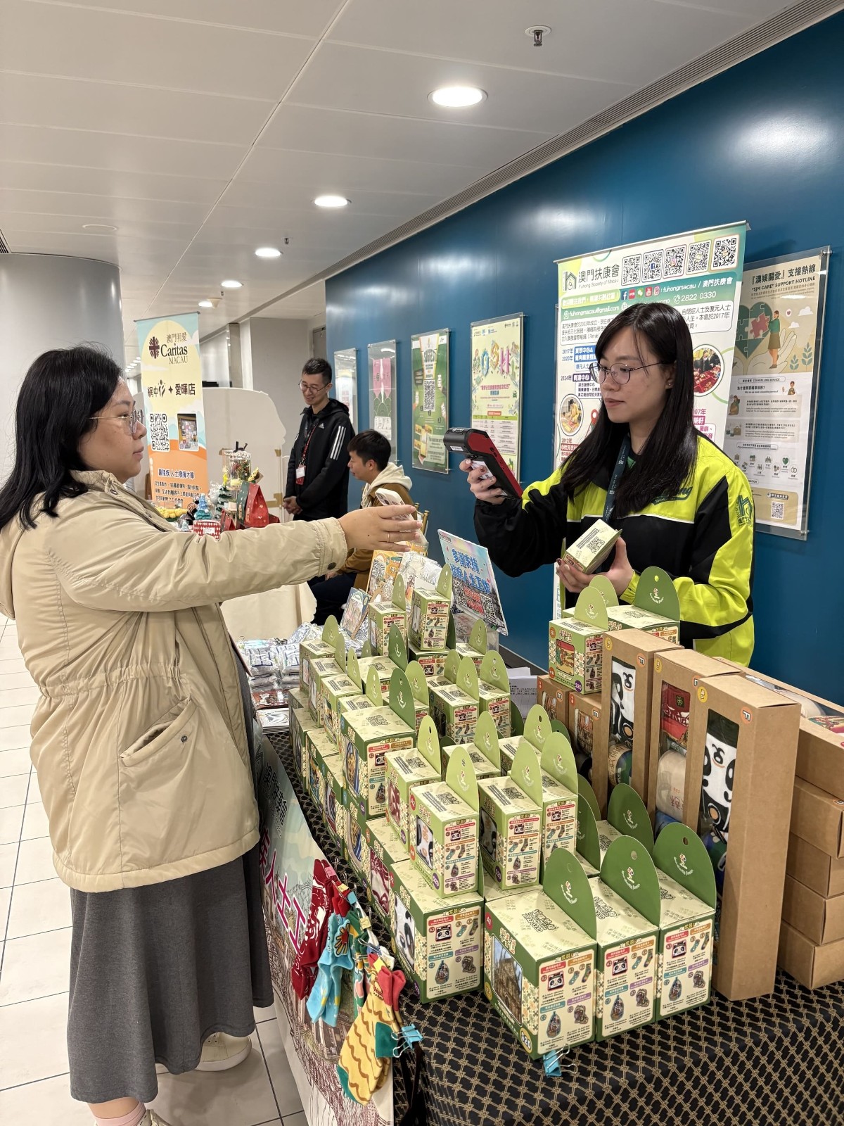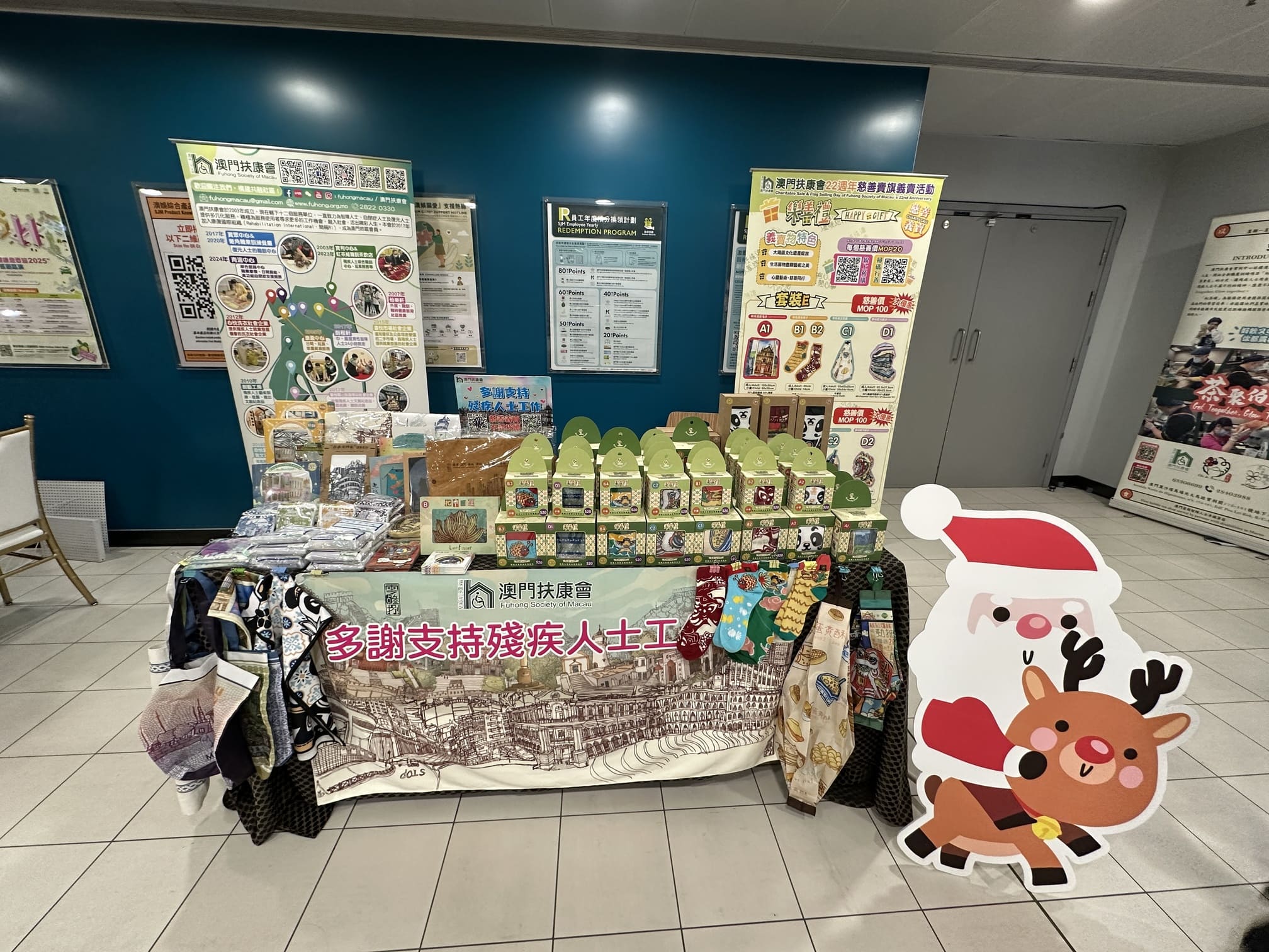 本會衷心感謝澳娛綜合的邀請,讓我們有機會於12月15日至17日在上葡京、海立方及新葡京的員工後勤區擺設慈善義賣攤位,為本會創造一個平台向更多員工及大眾推廣本會的慈善理念,讓了解殘疾人士的才華與潛能。慈善義賣所籌得的善款,將全數用於支援殘疾人士的培訓及發展項目。再次感謝澳娛綜合的支持及提供場地,讓公益活動得以順利進行,傳遞溫暖與正能量!
