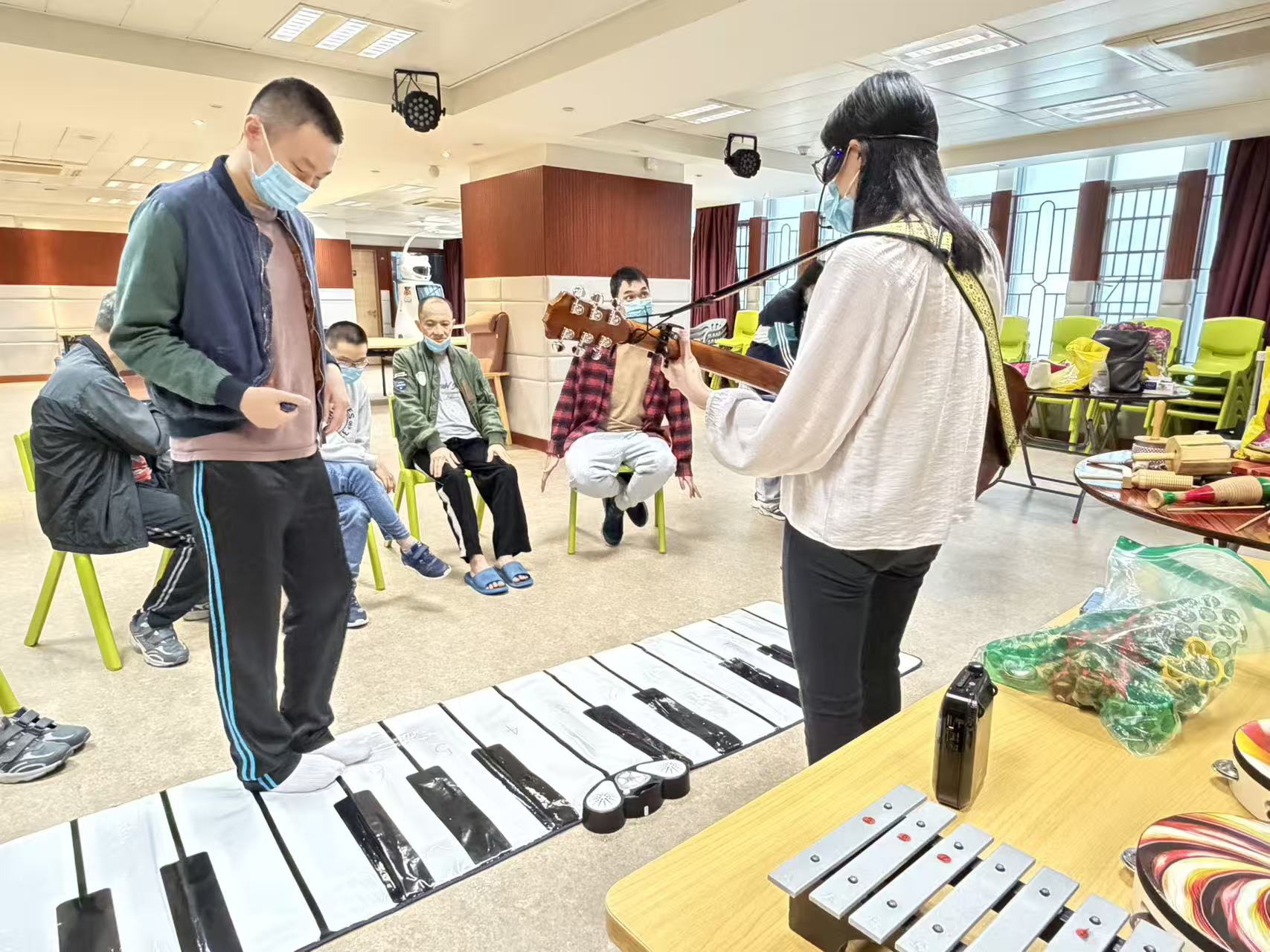 過程中,治療師運用節奏訓練、感官刺激及正向強化等技巧,營造安全而具支持性的治療環境,使參與者得以在藝術體驗中探索自我、建立連結,體現藝術治療促進內在成長與外在適應的雙重功能。