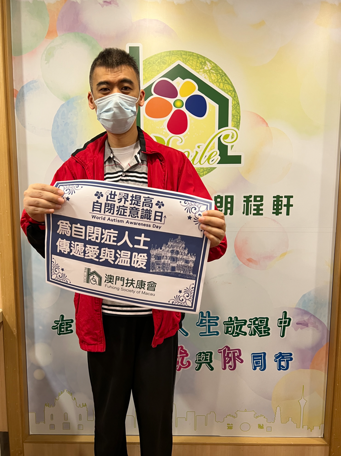 響應世界提高自閉症意識日,你我齊支持之朗程軒院舍!繼葡角餐廳及康盈中心之後,本會朗程軒也加入齊撐自閉症活動,一眾服務使用者和同工手持標語為自閉症人士打氣,用行動表示對紀念日的關注!通過對世界提高自閉症意識日的推廣宣傳,讓無論是大眾,還是服務使用者,都能了解自閉症,做到全民了解、接納與包容,一起建造一個共融和諧的社區環境!