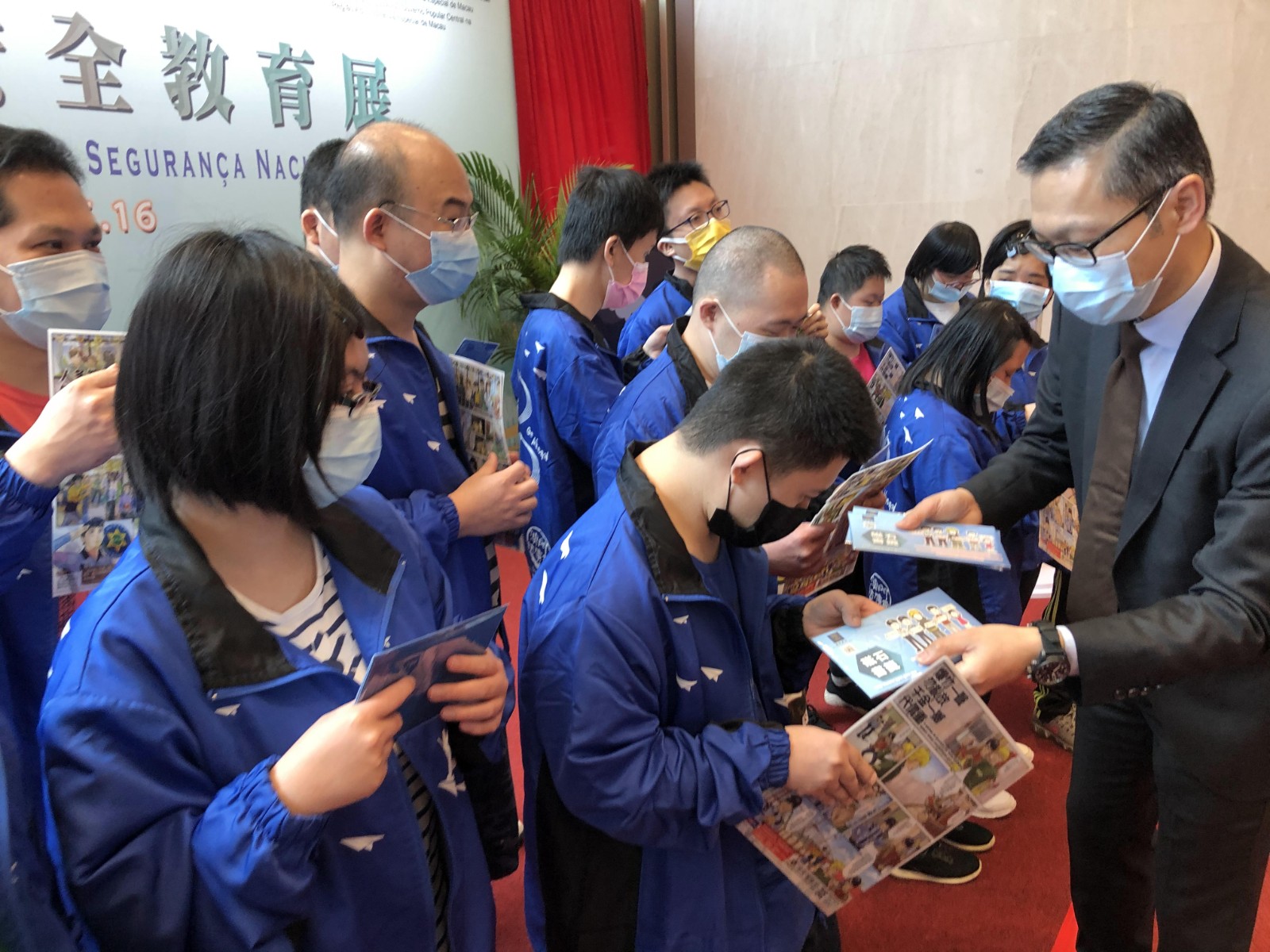 今屆「全民國家安全教育展」共分為四個部分,重點展示國家和澳門過去一年全力抗疫的過程,以及在維護國家安全建設方面的進展。過程中服務使用者全程投入,細心聆聽導賞員講解和觀看影片,從不同的角度、全新的視野認識國家安全和發展。